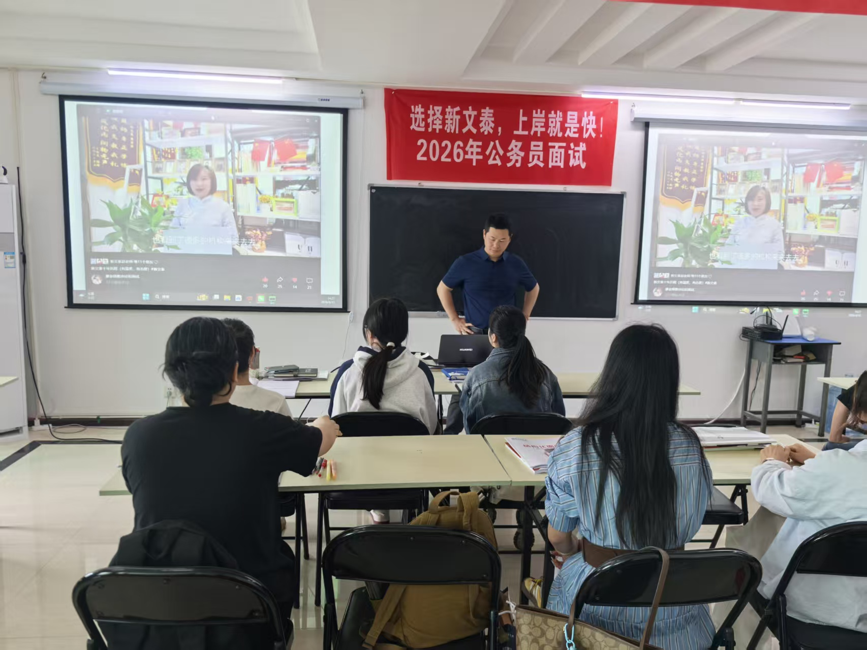 为了助力广大考生精准把握公务员面试考情,全面提升面试应试能力与综合素养,顺利圆梦公考。4月15日下午,新文泰教育2026年贵州公务员面试专项培训班隆重开班,众多怀揣公职梦想的考生齐聚一堂,开启一场面试备考冲刺之旅。