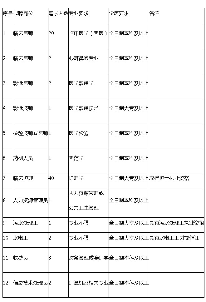 根据医院业务发展需要,经院长办公会议研究,报开阳县卫生和计划生育局批准,决定面向社会公开招聘非编制医务人员76人。为保证招聘工作顺利实施,现将公告发布如下:
