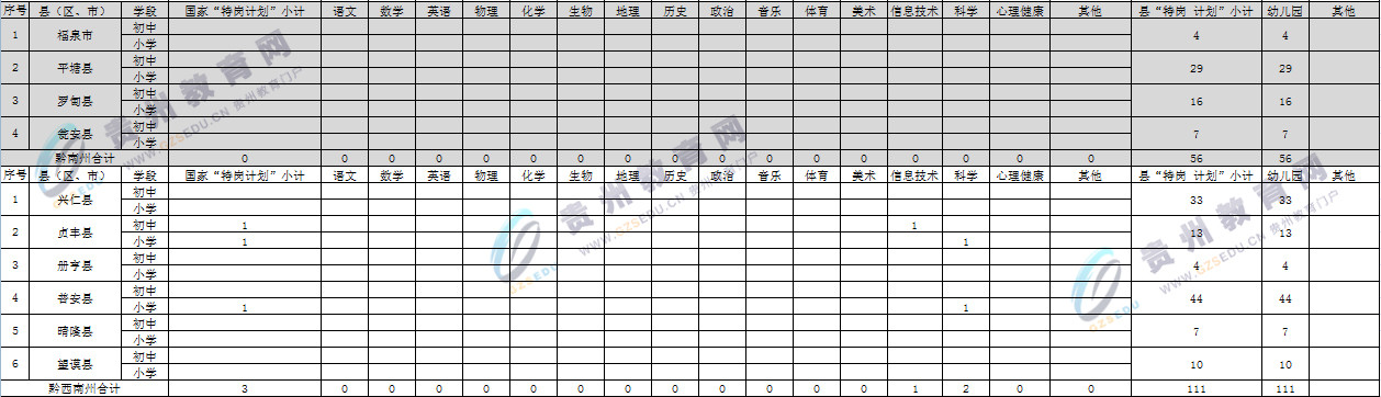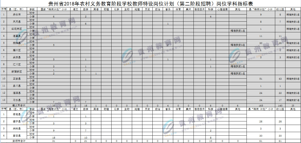 以下附上贵州省2018年农村义务教育阶段学校教师特设岗位计划(第二阶段)岗位学科指标表