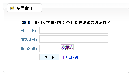 关键字:2018年,贵州大学,招聘笔试成绩,排名查询入口
