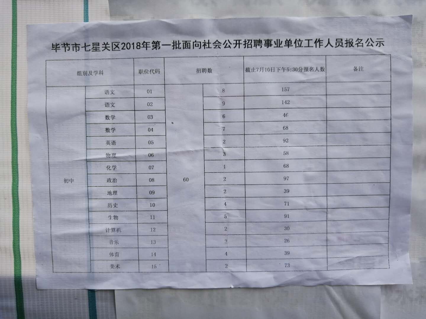 关键字:2018年,贵州毕节市,七星关区,事业单位招聘,教师岗,报名人数统计