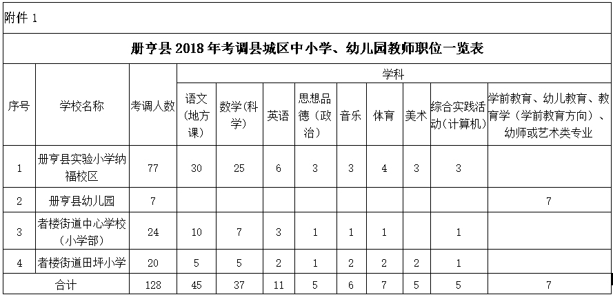 具体考调职位详见附件1《册亨县2018年考调县城区中小学、幼儿园教师职位一览表》,以下统一简称为《考调职位一览表》。