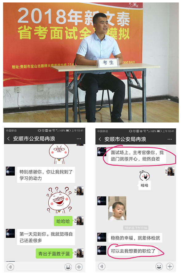 备考路上感谢有你!情不知何起,庆幸在新文泰遇到了你。在一个偶然的聊天中,韦同学让我和他一起报个面试培训本,我那已然沉静或者说麻木的心动摇了,直到那天晚上我踏入新文泰的大门看到小班的小伙伴彻底放飞了自我。感觉有好多话要说,迫不及待想上课,破天荒的问小伙伴们有啥作业。回想,那还是我么……终于迎来了廖老师的第一堂课,记忆犹新!班上氛围很好,老师讲得生动,学生听得认真!就这样开始新文泰之旅!上课、对练、谈心其乐融融!总而言之,这一路上感谢有你!感谢廖老师让我找到了目标!感谢韦同学的关心!感谢周、吴二位小姐姐把我宠成了公主!感谢小班其他同学的担待!就这样我带着愉悦的心态走上了考场,看到主考官我仿佛看到了二十年后廖老师的,心情更加好了。答完第一题我感觉自己赢定了……果然如我所愿