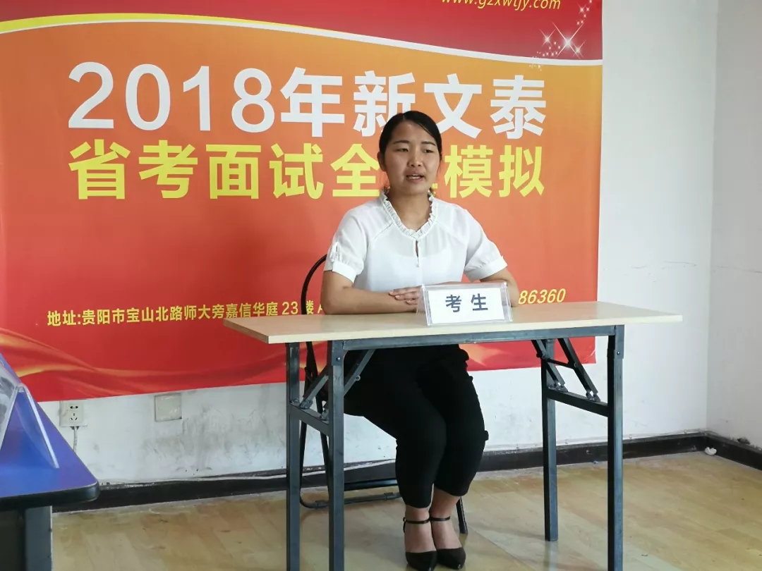 记得排名出来那天,因为忙着工作,还是是同学告诉我的,我当时心里咯噔咯噔跳个不停,感觉比等成绩还要激动。终于查到了,进面了,而且还是笔试第一!当时的心情真的可以用中了大奖来形容。但是激动之于,我想着今年的面试好像在之前的公告上说过要在月底完成,所以我立刻报了新文泰的第一期面试班,然后请了假第二天就去了贵阳。我们第一期的公务员面试班有20几个,当时理论是廖老师上,虽然我之前有培训过,但是毕竟过了挺长时间了,所以感觉一切从零开始最好。