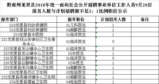 截止9月20日17:00报名人数与招聘计划数达不到3:1比例情况公示。