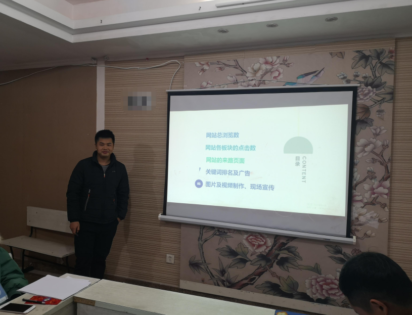 接下来网络部大吴老师和小吴老师为大家介绍了2018年公司互联网工作情况及2019年的工作计划,小吴老师主要负责公司网站的日常更新、网站竞价、网站后台维护、图片广告、视频加工、光荣榜制作等技术工作。小吴老师在平常的工作中,虽言语不多,但为人热心和善,同事们都很喜欢他。