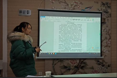 网络部发言结束后,接下来由教学部老师发言,发言顺序依次是:教学部主管廖老师,教学秘书肖老师,教学部新人韩老师。