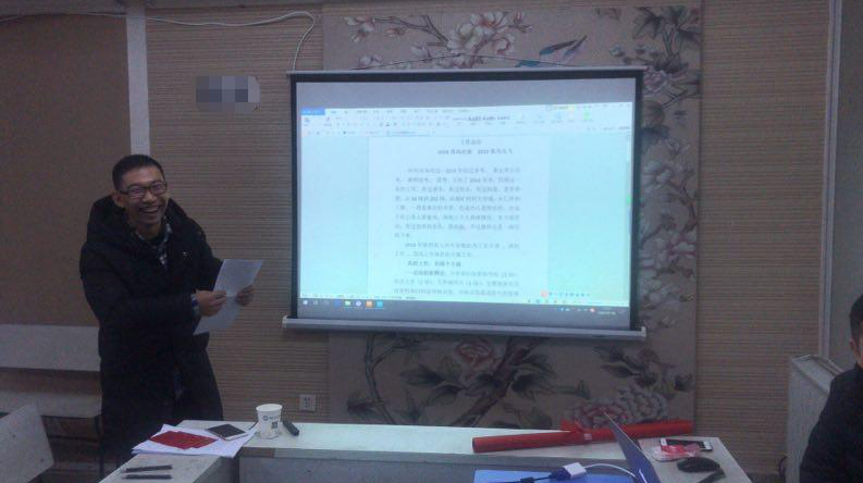 会议开始,谭校长简单地做了致辞之后,便开始了第一个环节,就是各部门工作人员做年终总结。第一位发言人由财务办公室主任赵老师对2018年公司的收支状况及个人的工作成果向大家展示,让每位同事对公司的财务状况都有了了解。赵老师工作一丝不苟,在财务工作方面更是公正细致,这也是公司能稳步发展的重要因素。