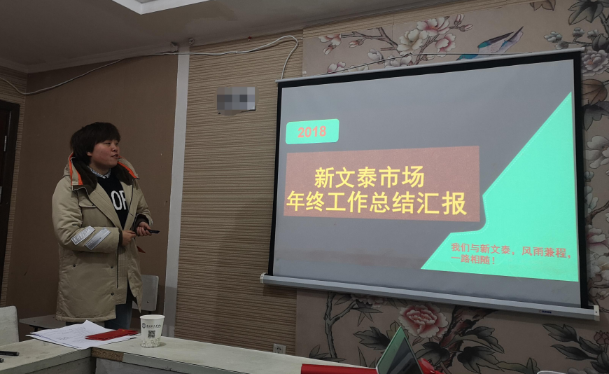 最后一位做总结发言的同事是市场部总监陈老师。陈老师在发言中介绍了市场部外出宣传的费用及与历年宣传费用的对比,同时也提出了更多有建设性的意见和建议,帮助新文泰更好的推广打响品牌战。作为一个女生,率领市场部东奔西跑,几年时间下来,几乎走遍了贵州省各个重要地区和县份,可谓是真正的“铁娘子”!