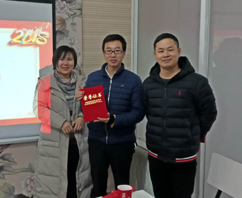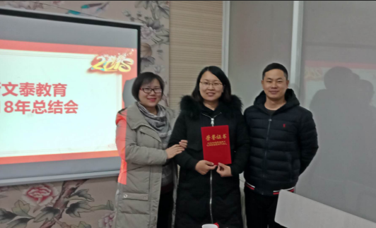 今年年终总结大会值得一提的是增加了颁发个人荣誉证书这一个项目。最佳招生签单奖由大吴老师获得,公司最佳劳模奖由赵老师获得,工作最快进步奖由肖老师获得。三位老师为公司做出的贡献大家看在眼里记在心里,可谓名至实归!同时也是鼓励其他员工来年更努力地工作。
