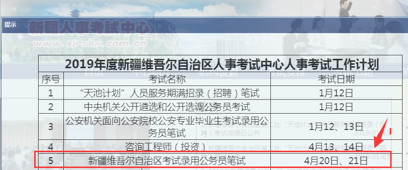 2月12日,新疆人事考试中心发布了2019年新疆人事考试计划的通知,从通知表上可以看出,新疆公务员考试将于4月20日、21日举行!